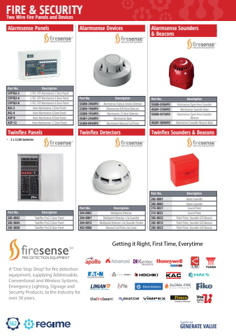 562FIRE & SECURITYTogether we GENERATE VALUETwo Wire Fire Panels and DevicesAlarmsense Panels Alarmsense Sounders & BeaconsPart No. DescriptionCFP702-2 C-TEC CFP Alarmsense 2 Zone PanelCFP702-4 C-TEC CFP Alarmsense 4 Zone PanelCFP702-8 C-TEC CFP Alarmsense 4 Zone PanelALS-2 Haes Alarmsense 2 Zone PanelALS-4 Haes Alarmsense 4 Zone PanelASP-8 Haes Alarmsense 8 Zone PanelASP-12 Haes Alarmsense 12 Zone PanelPart No. Description55000-018APO Alarmsense Open Area Sounder45681-510APO Alarmsense Sounder Base55000-017APO Alarmsense Open Area Sounder Beacon45681-509APO Alarmsense Sounder Beacon BaseTwinflex DetectorsPart No. Description204-0003 Multipoint Detector204-0001 Multipoint Detector c/w Sounder204-0012 Multipoint Detector c/w Sounder Strobe402-0006 Manual Call Point c/w Cover Alarmsense DevicesPart No. Description55000-390APO Alarmsense Optical Smoke Detector55000-190APO Alarmsense A1R Heat Detector55000-193APO Alarmsense CS Heat Detector45681-244APO Alarmsense Base55400-894APO Alarmsense Manual Call PointTwinflex Panels%u2022 2 x 3.2Ah batteriesPart No. Description505-0002 Twinflex Pro2 2 Zone Panel505-0004 Twinflex Pro2 4 Zone Panel505-0008 Twinflex Pro2 8 Zone PanelTwinflex Sounders & BeaconsPart No. Description302-0001 Hatari Sounder302-0002 Hatari Sounder313-0021 Sound Point313 0022 Sound Point302-0022 Flash Point, Sounder LED Beacon302-0012 Flash Point, Sounder LED Beacon302-0023 Flash Point, Sounder LED Beacon